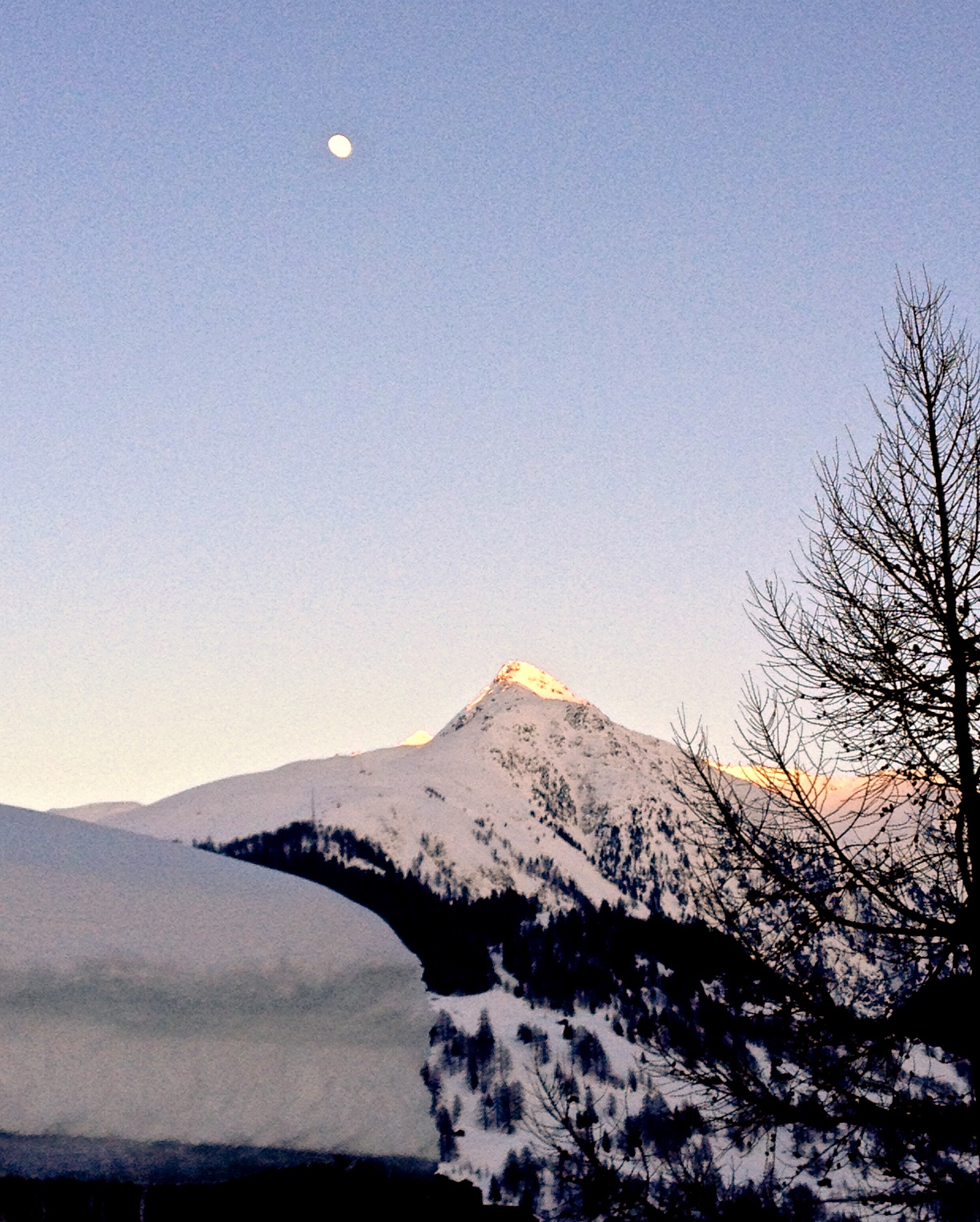Moon over mountain with tree afternoon